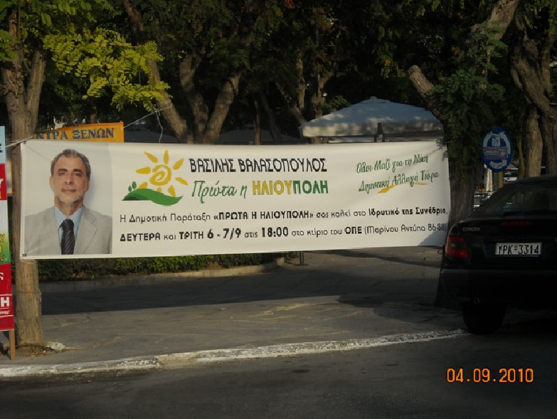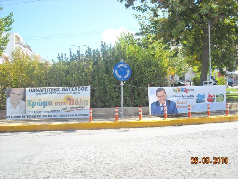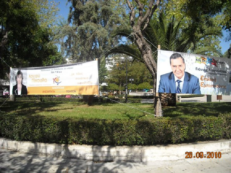 «υποψήφιος διαφημίζεται σε παράνομες πινακίδες»