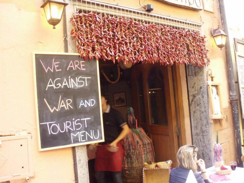 Αλλά κατά τ’ άλλα αηδίασα και ταλαιπωρήθηκα. Δεν μπορούσα να βρω Ιταλό πουθενά αλλά Πακιστανούς, Ινδούς, Κινέζους και Λιβανέζους είδα παντού. Όλοι θέλαν κάτι να μου πουλήσουν, βάζαν τριαντάφυλλα στα χέρια της γυναίκας μου και μας βγάζαν φωτογραφία με το ζόρι, για να ζητήσουν 5€ μετά. Μας βοήθησε κάποιος να βγάλουμε εισιτήρια για το καταβρώμικο μετρό, και μετά μου ζήτησε χρήματα για να πιεί καφέ. Ιταλικό εστιατόριο πουθενά. Για την ακρίβεια, υπήρχαν, ήταν τα γνωστά restaurant-παγίδες, με τη φθηνότερη πίτσα να κάνει 9€ και τα τορτελίνια να έχουν το μέγεθος κούπας του καφέ. Κανένα κέρασμα, ψωμί όταν υπήρχε ήταν ξερό, οι μάγειρες ήταν αλλοδαποί.