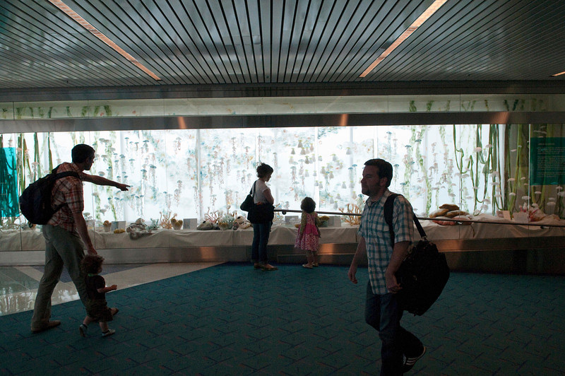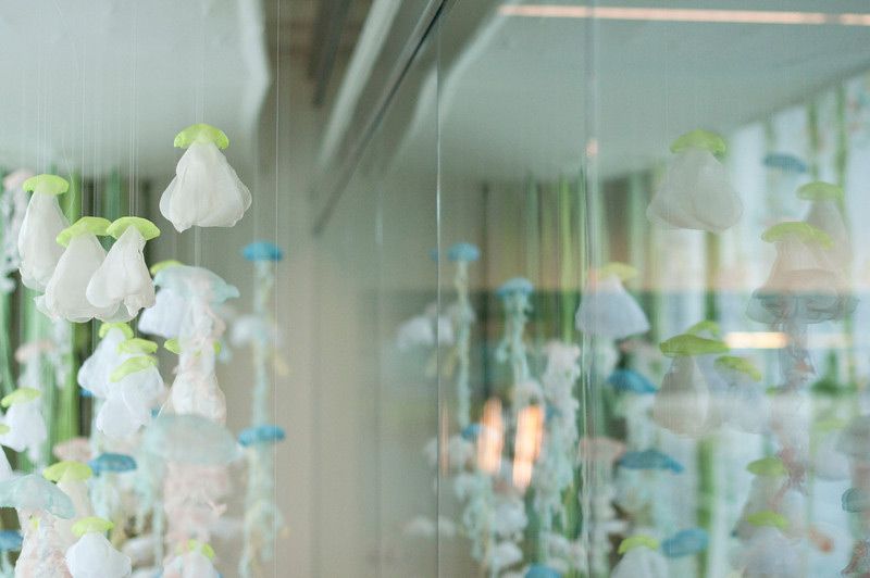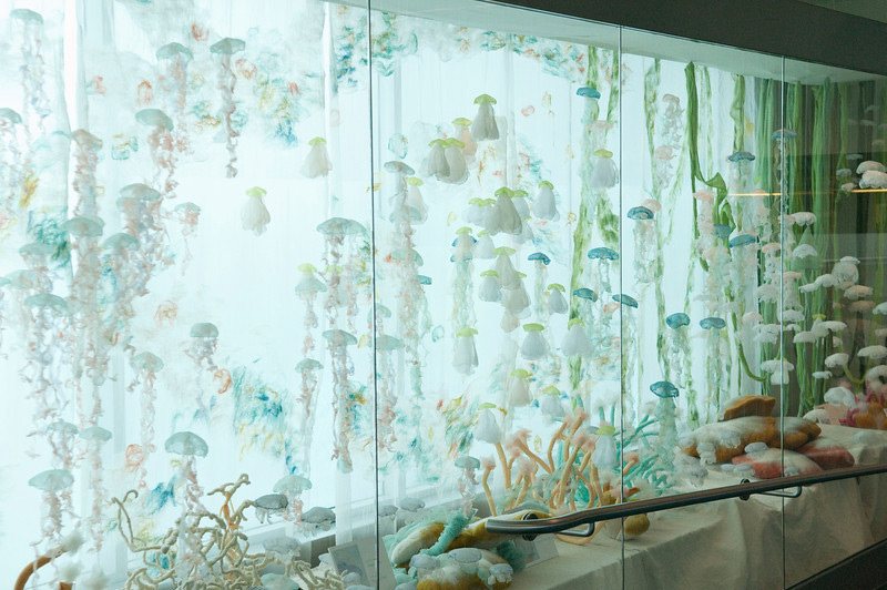 Η Sayuri έφτιαξε την εγκατάσταση με το όνομα Urban Aquarium (Αστικό ενυδρείο) στο αεροδρόμιο του Πόρτλαντ, Όρεγκον. Ο βυθός της αποτελείται από κοράλια και μέδουσες που έχει φτιάξει η ίδια από υφάσματα κι άλλα αδιάβροχα υλικά. Οι επισκέπτες του αεροδρομίου σταματούν μπροστά στο έργο της κι ηρεμούν παρατηρώντας την ποικιλομορφία, την ομορφιά, τη ζωντάνια του βυθού της. Να μια τέχνη που ησυχάζει, που ανακουφίζει, που μαγεύει. Όσοι ετοιμάζονται να πετάξουν έχουν ανάγκη απ’ τη γαλήνη αυτής της υπόγειας πτήσης.