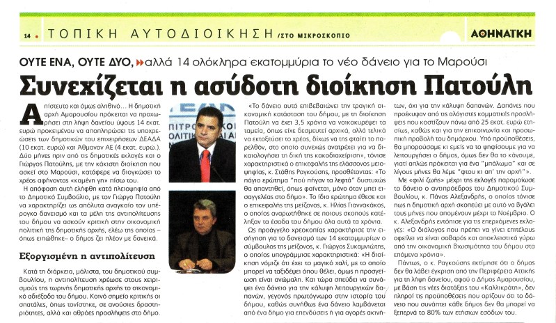 Θεωρούμε, επομένως, ότι το σχόλιο στο blog σας που αναφέρεται σε «πρωτοβουλία της κυβέρνησης» αδικεί την προσπάθεια που καταβάλλει όλα αυτά τα χρόνια πρώτη απ’ όλους η Δημοτική Αρχή του Γιώργου Πατούλη, ώστε με σχέδιο και πρόγραμμα, κάθε μέρα που περνά, το Μαρούσι να γίνεται ακόμη πιο όμορφη, ακόμη πιο ασφαλής πόλη.
